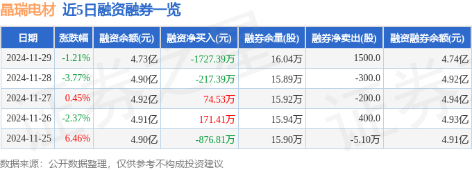 晶瑞电材融资融券信息显示,融资方面,当日融资买入3888.33万元,融资偿还5615.72万元,融资净偿还1727.39万元。融券方面,融券卖出3900.0股,融券偿还2400.0股,融券余量16.04万股,融券余额170.02万元。融资融券余额4.74亿元。