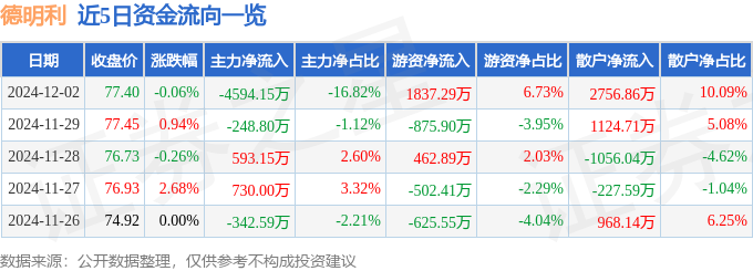 12月2日的资金流向数据方面,主力资金净流出4594.15万元,占总成交额16.82%,游资资金净流入1837.29万元,占总成交额6.73%,散户资金净流入2756.86万元,占总成交额10.09%。