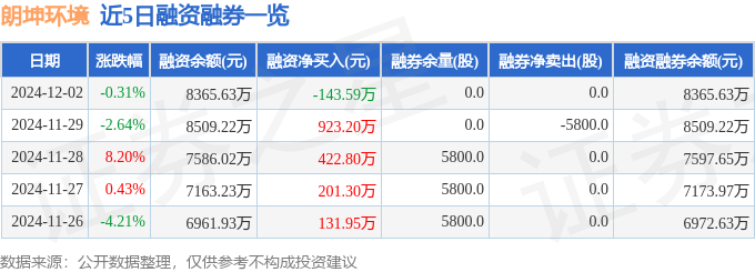 朗坤环境融资融券信息显示,融资方面,当日融资买入958.98万元,融资偿还1102.57万元,融资净偿还143.59万元。融券方面,融券卖出0.0股,融券偿还0.0股,融券余量0.0股,融券余额0.0万元。融资融券余额8365.63万元。