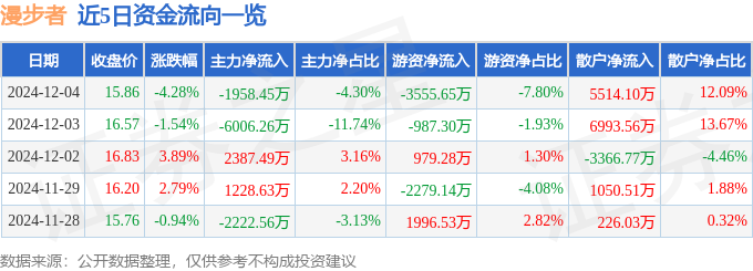 12月4日的资金流向数据方面,主力资金净流出1958.45万元,占总成交额4.3%,游资资金净流出3555.65万元,占总成交额7.8%,散户资金净流入5514.1万元,占总成交额12.09%。