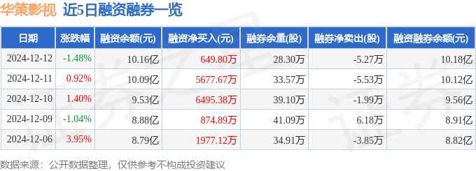 华策影视融资融券信息显示,融资方面,当日融资买入1.94亿元,融资偿还1.87亿元,融资净买入649.8万元,连续3日净买入累计1.28亿元。融券方面,融券卖出2300.0股,融券偿还5.5万股,融券余量28.3万股,融券余额245.36万元。融资融券余额10.18亿元。