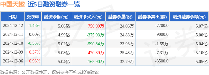 中国天楹融资融券信息显示,融资方面,当日融资买入2282.83万元,融资偿还1531.84万元,融资净买入750.99万元。融券方面,融券卖出5800.0股,融券偿还1.35万股,融券余量24.06万股,融券余额128.24万元。融资融券余额5.07亿元。