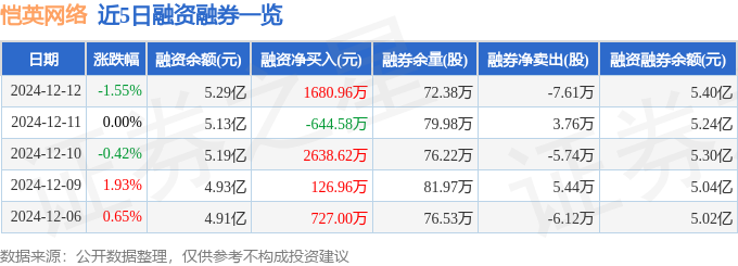 恺英网络融资融券信息显示,融资方面,当日融资买入6863.81万元,融资偿还5182.85万元,融资净买入1680.96万元。融券方面,融券卖出3.25万股,融券偿还10.86万股,融券余量72.38万股,融券余额1009.63万元。融资融券余额5.4亿元。