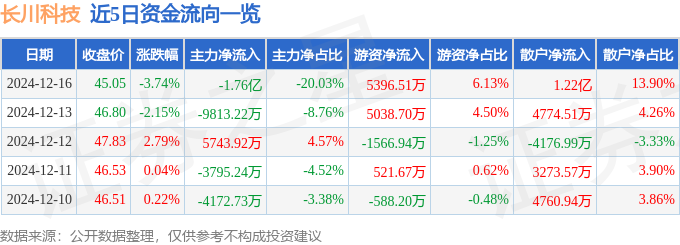 12月16日的资金流向数据方面,主力资金净流出1.76亿元,占总成交额20.03%,游资资金净流入5396.51万元,占总成交额6.13%,散户资金净流入1.22亿元,占总成交额13.9%。