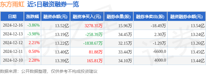 东方雨虹融资融券信息显示,融资方面,当日融资买入7314.41万元,融资偿还4036.06万元,融资净买入3278.35万元。融券方面,融券卖出1.0万股,融券偿还19.49万股,融券余量15.96万股,融券余额210.83万元。融资融券余额13.54亿元。