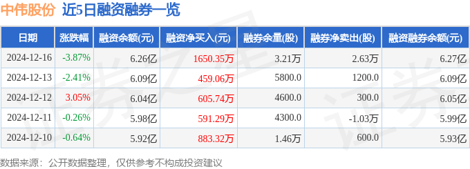 中伟股份融资融券信息显示,融资方面,当日融资买入4795.0万元,融资偿还3144.64万元,融资净买入1650.35万元,连续3日净买入累计2715.15万元。融券方面,融券卖出2.72万股,融券偿还900.0股,融券余量3.21万股,融券余额121.08万元。融资融券余额6.27亿元。