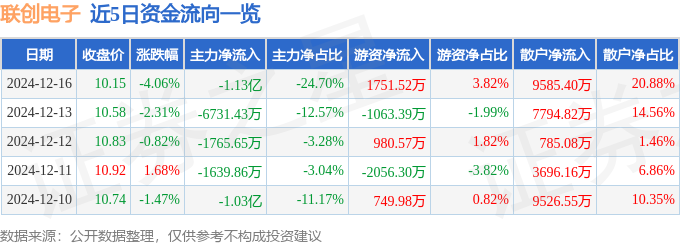 12月16日的资金流向数据方面,主力资金净流出1.13亿元,占总成交额24.7%,游资资金净流入1751.52万元,占总成交额3.82%,散户资金净流入9585.4万元,占总成交额20.88%。