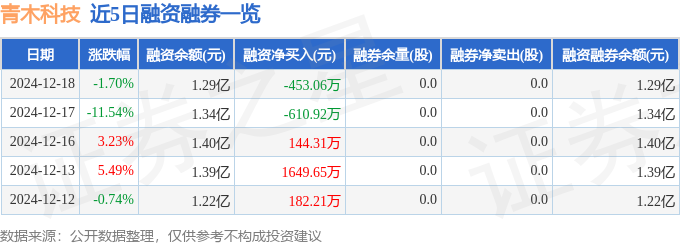 青木科技融资融券信息显示,融资方面,当日融资买入1106.98万元,融资偿还1560.05万元,融资净偿还453.06万元。融券方面,融券卖出0.0股,融券偿还0.0股,融券余量0.0股,融券余额0.0万元。融资融券余额1.29亿元。