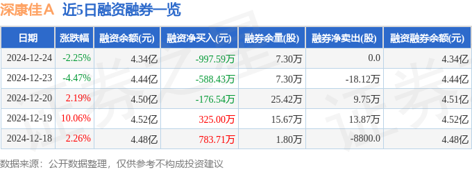 深康佳A融资融券信息显示,融资方面,当日融资买入3595.96万元,融资偿还4593.56万元,融资净偿还997.59万元。融券方面,融券卖出0.0股,融券偿还0.0股,融券余量7.3万股,融券余额38.11万元。融资融券余额4.34亿元。