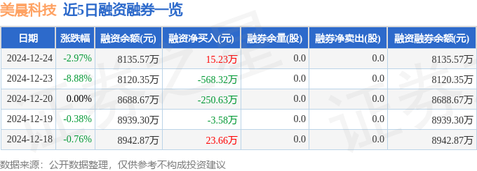 美晨科技融资融券信息显示,融资方面,当日融资买入530.13万元,融资偿还514.9万元,融资净买入15.23万元。融券方面,融券卖出0.0股,融券偿还0.0股,融券余量0.0股,融券余额0.0万元。融资融券余额8135.57万元。