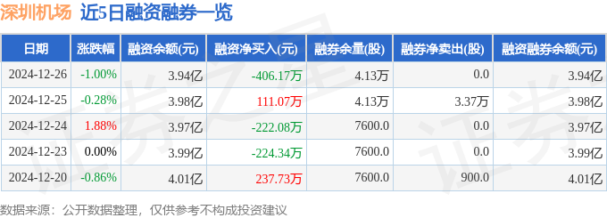 深圳机场融资融券信息显示,融资方面,当日融资买入315.16万元,融资偿还721.33万元,融资净偿还406.17万元。融券方面,融券卖出0.0股,融券偿还0.0股,融券余量4.13万股,融券余额28.66万元。融资融券余额3.94亿元。