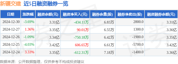 新疆交建融资融券信息显示,融资方面,当日融资买入1447.96万元,融资偿还1882.07万元,融资净偿还434.11万元。融券方面,融券卖出5100.0股,融券偿还2300.0股,融券余量6.83万股,融券余额78.55万元。融资融券余额3.31亿元。