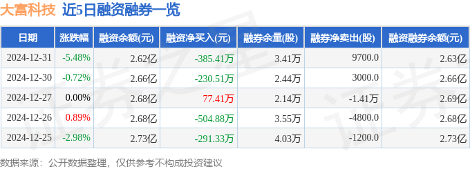 大富科技融资融券信息显示,融资方面,当日融资买入599.64万元,融资偿还985.05万元,融资净偿还385.41万元。融券方面,融券卖出1.15万股,融券偿还1800.0股,融券余量3.41万股,融券余额40.0万元。融资融券余额2.63亿元。