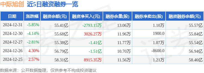 中际旭创融资融券信息显示,融资方面,当日融资买入5.87亿元,融资偿还6.15亿元,融资净偿还2793.15万元。融券方面,融券卖出1.87万股,融券偿还7700.0股,融券余量13.06万股,融券余额1613.53万元。融资融券余额55.57亿元。