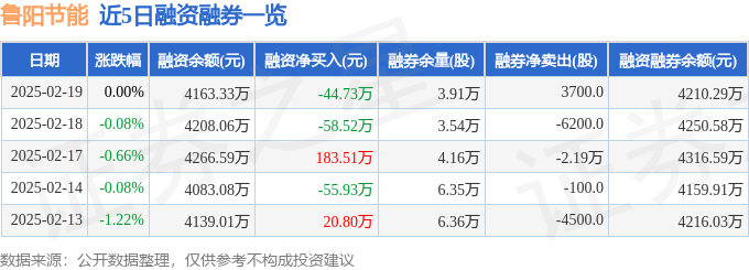 鲁阳节能融资融券信息显示,融资方面,当日融资买入165.73万元,融资偿还210.45万元,融资净偿还44.73万元。融券方面,融券卖出3700.0股,融券偿还0.0股,融券余量3.91万股,融券余额46.96万元。融资融券余额4210.29万元。