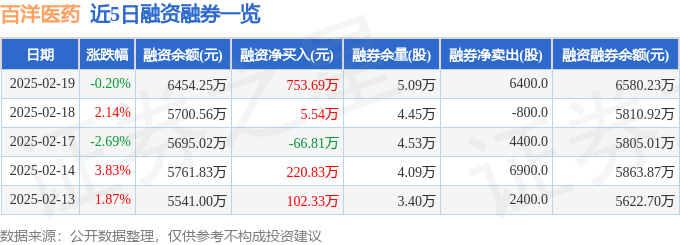 百洋医药融资融券信息显示,融资方面,当日融资买入1414.1万元,融资偿还660.42万元,融资净买入753.69万元。融券方面,融券卖出6500.0股,融券偿还100.0股,融券余量5.09万股,融券余额125.98万元。融资融券余额6580.23万元。