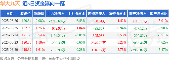 截至2025年6月26日收盘,华大九天(301269)报收于120.34元,下跌2.08%,换手率1.32%,成交量3.46万手,成交额4.22亿元。