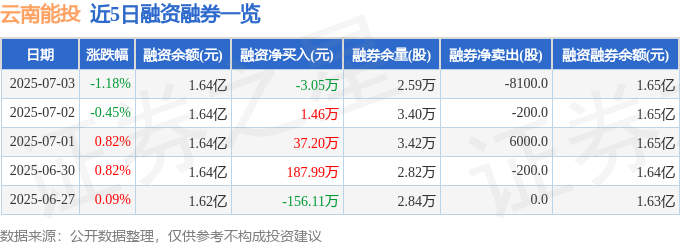 云南能投融资融券信息显示,融资方面,当日融资买入484.98万元,融资偿还488.02万元,融资净偿还3.05万元。融券方面,融券卖出0.0股,融券偿还8100.0股,融券余量2.59万股,融券余额28.28万元。融资融券余额1.65亿元。