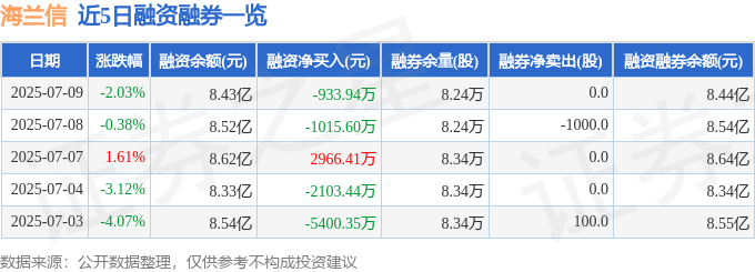 海兰信融资融券信息显示,融资方面,当日融资买入1.23亿元,融资偿还1.32亿元,融资净偿还933.94万元。融券方面,融券卖出0.0股,融券偿还0.0股,融券余量8.24万股,融券余额147.25万元。融资融券余额8.44亿元。