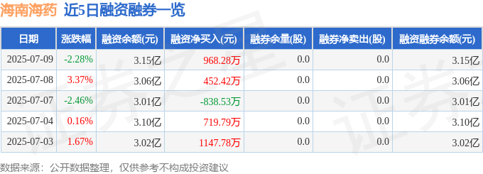 海南海药融资融券信息显示,融资方面,当日融资买入4192.7万元,融资偿还3224.42万元,融资净买入968.28万元。融券方面,融券卖出0.0股,融券偿还0.0股,融券余量0.0股,融券余额0.0万元。融资融券余额3.15亿元。