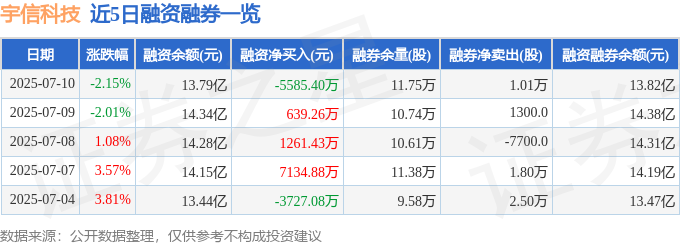 截至2025年7月10日收盘,宇信科技(300674)报收于28.69元,下跌2.15%,换手率9.08%,成交量63.83万手,成交额18.49亿元。