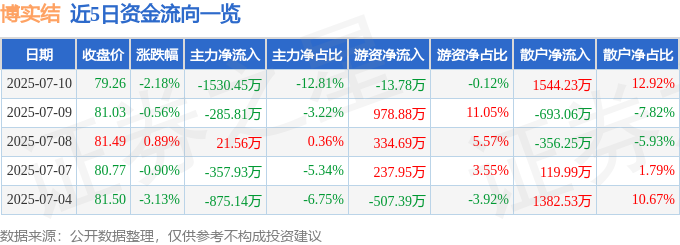 7月10日的资金流向数据方面,主力资金净流出1530.45万元,占总成交额12.81%,游资资金净流出13.78万元,占总成交额0.12%,散户资金净流入1544.23万元,占总成交额12.92%。
