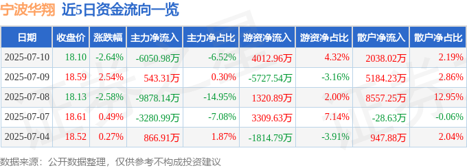 7月10日的资金流向数据方面,主力资金净流出6050.98万元,占总成交额6.52%,游资资金净流入4012.96万元,占总成交额4.32%,散户资金净流入2038.02万元,占总成交额2.19%。