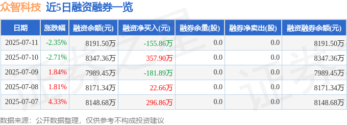 众智科技融资融券信息显示,融资方面,当日融资买入1288.21万元,融资偿还1444.06万元,融资净偿还155.86万元。融券方面,融券卖出0.0股,融券偿还0.0股,融券余量0.0股,融券余额0.0万元。融资融券余额8191.5万元。