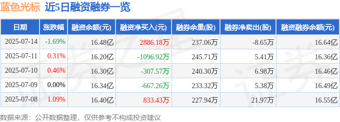 近5日融资融券数据一览见下表: