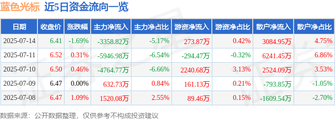 7月14日的资金流向数据方面,主力资金净流出3358.82万元,占总成交额5.17%,游资资金净流入273.87万元,占总成交额0.42%,散户资金净流入3084.95万元,占总成交额4.75%。