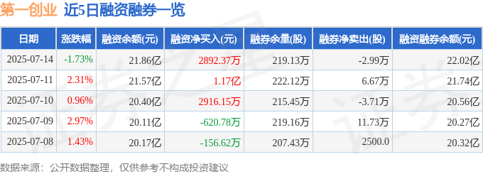 第一创业融资融券信息显示,融资方面,当日融资买入1.51亿元,融资偿还1.22亿元,融资净买入2892.37万元,连续3日净买入累计1.75亿元。融券方面,融券卖出2400.0股,融券偿还3.23万股,融券余量219.13万股,融券余额1619.37万元。融资融券余额22.02亿元。