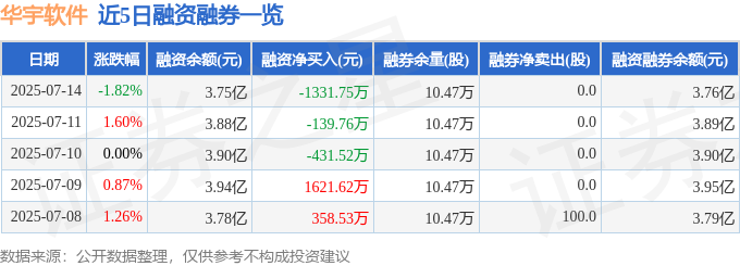 华宇软件融资融券信息显示,融资方面,当日融资买入2601.22万元,融资偿还3932.97万元,融资净偿还1331.75万元。融券方面,融券卖出0.0股,融券偿还0.0股,融券余量10.47万股,融券余额84.81万元。融资融券余额3.76亿元。