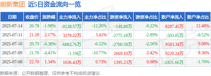 7月14日的资金流向数据方面,主力资金净流出8138.57万元,占总成交额12.26%,游资资金净流出148.88万元,占总成交额0.22%,散户资金净流入8287.45万元,占总成交额12.48%。