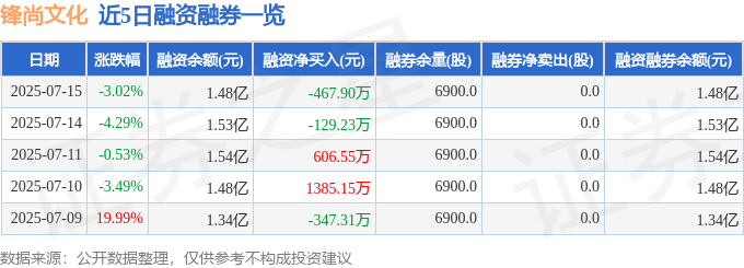 截至2025年7月15日收盘,锋尚文化(300860)报收于29.85元,下跌3.02%,换手率9.21%,成交量10.31万手,成交额3.1亿元。