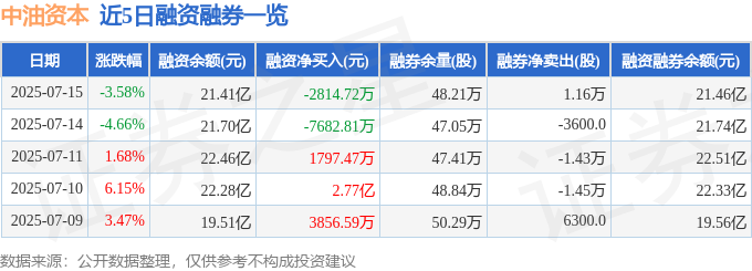 中油资本融资融券信息显示,融资方面,当日融资买入5.42亿元,融资偿还5.71亿元,融资净偿还2814.72万元。融券方面,融券卖出1.82万股,融券偿还6600.0股,融券余量48.21万股,融券余额428.1万元。融资融券余额21.46亿元。
