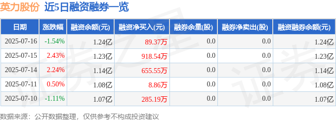 英力股份融资融券信息显示,融资方面,当日融资买入1831.88万元,融资偿还1742.51万元,融资净买入89.37万元,连续3日净买入累计1663.46万元。融券方面,融券卖出0.0股,融券偿还0.0股,融券余量0.0股,融券余额0.0万元。融资融券余额1.24亿元。