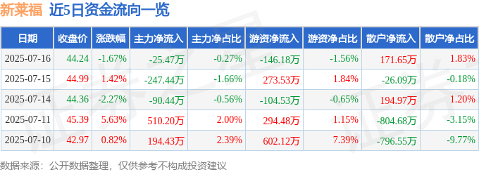7月16日的资金流向数据方面,主力资金净流出25.47万元,占总成交额0.27%,游资资金净流出146.18万元,占总成交额1.56%,散户资金净流入171.65万元,占总成交额1.83%。
