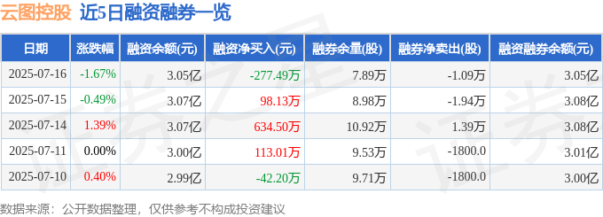 云图控股融资融券信息显示,融资方面,当日融资买入1068.37万元,融资偿还1345.86万元,融资净偿还277.49万元。融券方面,融券卖出3200.0股,融券偿还1.41万股,融券余量7.89万股,融券余额78.9万元。融资融券余额3.05亿元。