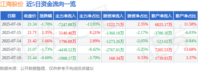 7月16日的资金流向数据方面,主力资金净流出7247.88万元,占总成交额13.93%,游资资金净流入1222.71万元,占总成交额2.35%,散户资金净流入6025.17万元,占总成交额11.58%。