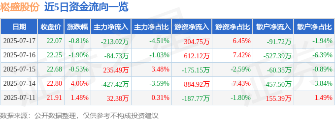 7月17日的资金流向数据方面,主力资金净流出213.02万元,占总成交额4.51%,游资资金净流入304.75万元,占总成交额6.45%,散户资金净流出91.72万元,占总成交额1.94%。