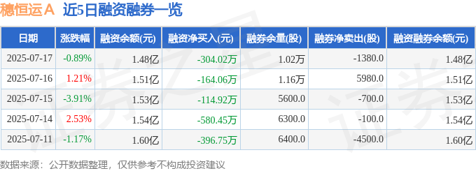 近5日融资融券数据一览见下表: