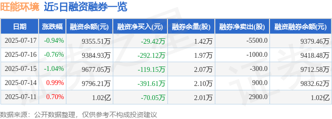 截至2025年7月17日收盘,旺能环境(002034)报收于16.87元,下跌0.94%,换手率0.93%,成交量4.0万手,成交额6759.66万元。