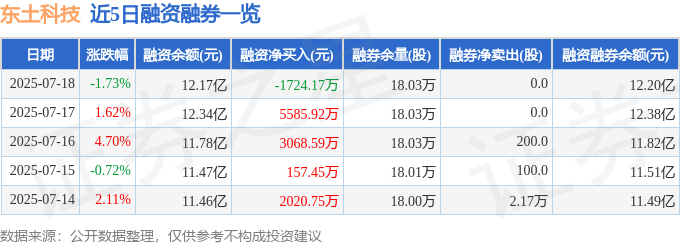 东土科技融资融券信息显示,融资方面,当日融资买入6135.54万元,融资偿还7859.71万元,融资净偿还1724.17万元。融券方面,融券卖出0.0股,融券偿还0.0股,融券余量18.03万股,融券余额388.91万元。融资融券余额12.2亿元。