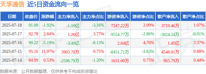 7月18日的资金流向数据方面,主力资金净流出1.1亿元,占总成交额3.16%,游资资金净流入7247.22万元,占总成交额2.09%,散户资金净流入3719.46万元,占总成交额1.07%。