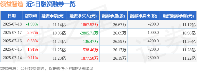 领益智造融资融券信息显示,融资方面,当日融资买入1.29亿元,融资偿还1.1亿元,融资净买入1867.52万元。融券方面,融券卖出800.0股,融券偿还1000.0股,融券余量26.67万股,融券余额244.56万元。融资融券余额11.17亿元。