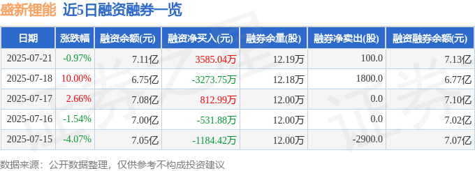 盛新锂能融资融券信息显示,融资方面,当日融资买入8447.28万元,融资偿还4862.24万元,融资净买入3585.04万元。融券方面,融券卖出100.0股,融券偿还0.0股,融券余量12.19万股,融券余额173.95万元。融资融券余额7.13亿元。