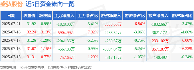 截至2025年7月21日收盘,盛弘股份(300693)报收于31.92元,下跌0.99%,换手率6.31%,成交量16.88万手,成交额5.35亿元。