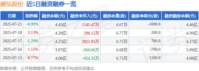 盛弘股份融资融券信息显示,融资方面,当日融资买入7824.38万元,融资偿还6278.91万元,融资净买入1545.47万元,连续3日净买入累计4663.53万元。融券方面,融券卖出300.0股,融券偿还1300.0股,融券余量6.67万股,融券余额212.91万元。融资融券余额4.46亿元。