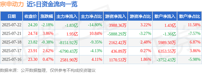 7月22日的资金流向数据方面,主力资金净流出1.83亿元,占总成交额14.8%,游资资金净流入3988.36万元,占总成交额3.22%,散户资金净流入1.43亿元,占总成交额11.58%。