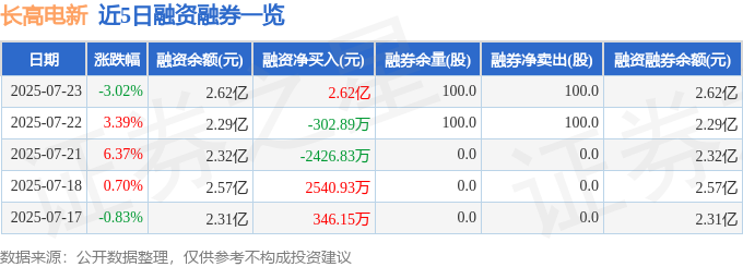 截至2025年7月23日收盘,长高电新(002452)报收于7.7元,下跌3.02%,换手率12.14%,成交量62.65万手,成交额4.88亿元。